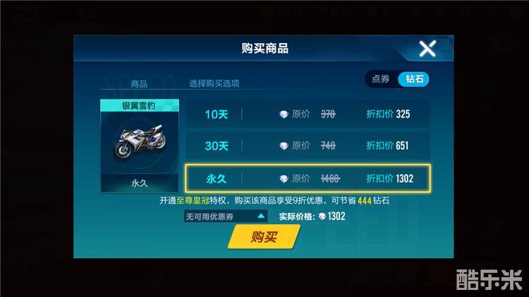 银翼雪豹已在商城上架,仅需16200点券或1400钻石即可获得银翼雪豹的永久使用权,开通至尊皇冠特权的玩家,还可以享受9折的优惠。