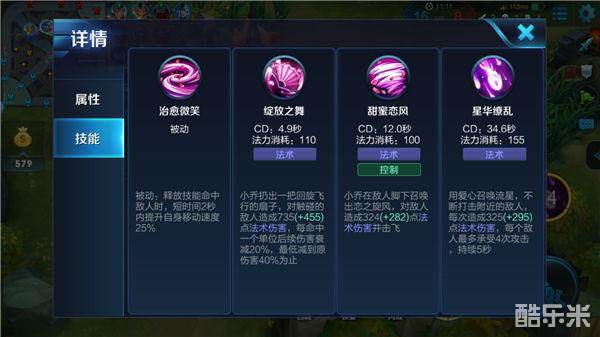 技能加点:小乔的一技能虽然是一个非常好的消耗技能,但是命中率却不是很高,如果配合二技能的击飞再使用一技能,则一技能成功率会大大提高,所以技能加点推荐均衡加点,主加一技能副加二技能,有大点大。