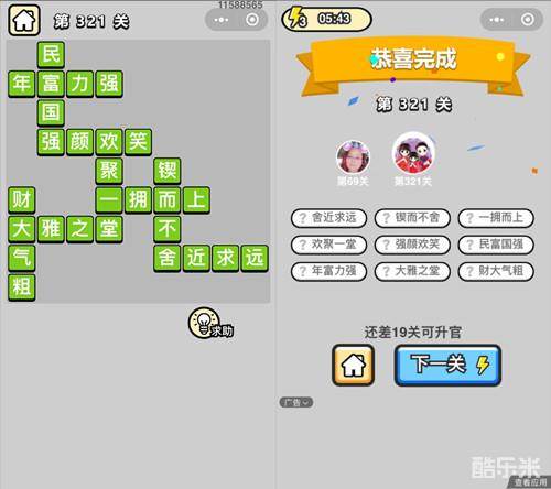 《成语升官记》状元第321关真的是十分的简单,涉及的成语数量不仅少,而且都是大家很熟悉的成语,下面就是小编为大家整理好的成语,大家可以先做了解,然后再通关~