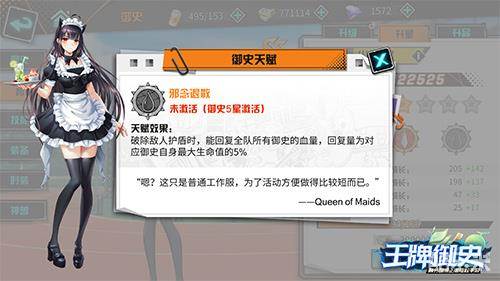 「猫耳女仆·小烟酱」为布属性SS级御史,定位是——近战全能战士,在爆发和群攻方面都有较为出色的表现,且在点亮天赋后,还将激活破盾增益及破盾回血的战斗加成。