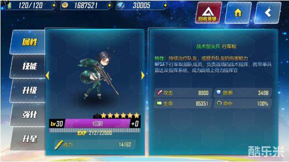 作为一个纯粹的“战斗奶”,升星后效果是非常可怕的,四星以后可以激活“纳米激素”技能,每隔20%,提升我方单体目标30%的攻击,持续10秒。搭配高输出的单秒爆发型尖兵,输出简直谜之可怕!3V3战场必带“尖兵”。六星以后可以激活“增幅合剂”治疗量提升30%,遇上强力输出的BOSS,稳不掉血,躲在一旁就偷着乐吧!