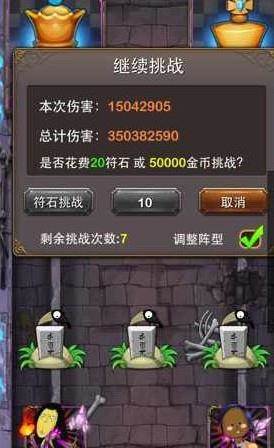 单Boss比较坑爹。该boss,需要用法术攻击。物理攻击只能打500W左右,用乌鸦都是800W+。单boss最佳阵容之一,或许有更好的。4火球+野德,场外助战教主。全装备火球不会死。撸主4火球除了法仗,全体裸装。全套装备上2000W应该没问题。