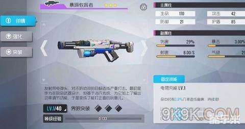 培养方面也比较丰富,同种类的武器有不同的技能选择。在加上角色的技能,搭配起来更是多种多样。当然,星级高的武器获得难度相对困难些,不过在这里并不推荐上来就追求高星级武器。虽然高低星之间属性是有悬殊,但是高星难获得,不好突破,低星级武器好入手好突破。在开荒期还是不要过于浪费资源比较好。不同种类的武器也有特殊效果,比如霰弹枪有击退效果,狙击枪有贯穿效果。