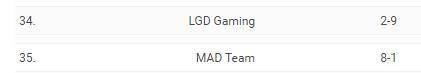 在我们LPL赛区排名倒数第一的LGD战队,战绩是2胜9负,而LMS赛区的最强战队MAD,战绩是8胜1负。相当于说在LMS赛区,MAD战队是近乎无敌的存在,是统治级别的战队。但就算这样,MAD的排名却是在LGD之下的。也就是说,ESPN的分析团队认为,LMS整个赛区的最强战队比LPL最弱的战队还要弱!