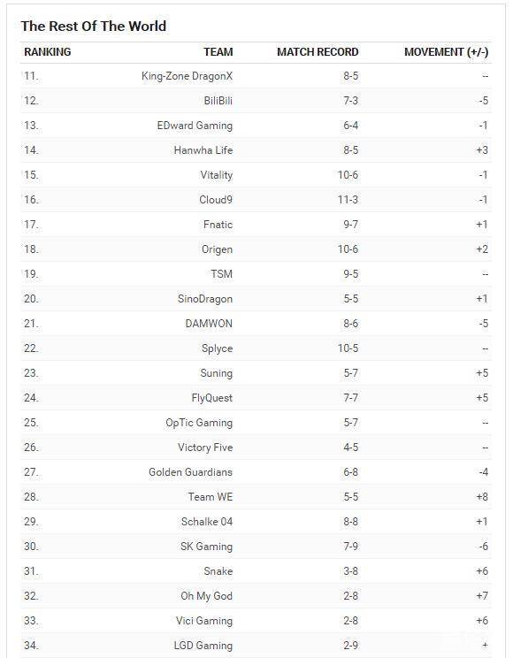 上周输了一场比赛的战队在排名上为何是上升的?简单的说:他们要做的就是贡献了本周最精彩的三场比赛中的一场,并且差一点打败了目前世界第一还未尝败绩的战队。