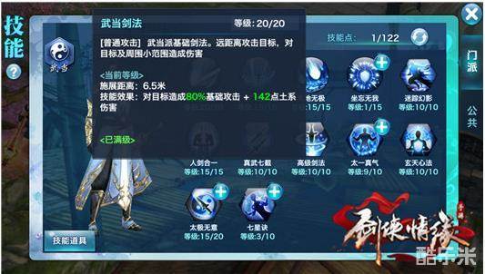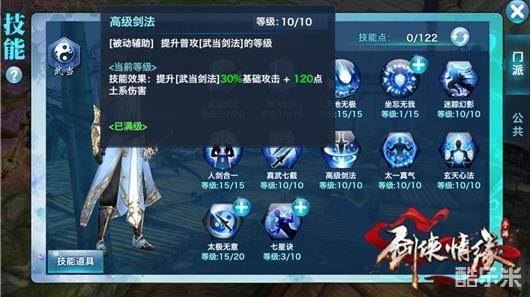 首先,普攻技能武当剑法是必须点满的,因为普攻技能没有CD,是除四大主动技之外的最重要的输出技能,上限20点,点满。