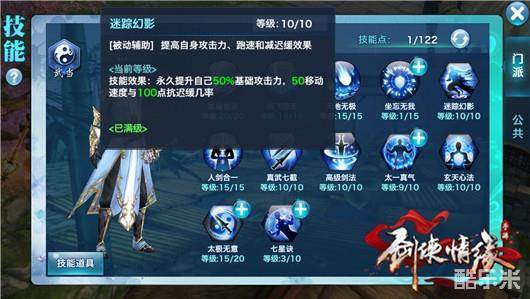 除去普攻技能外,武当的被动辅助技能迷踪幻影、真武七截、高级剑法、太一真气、玄天心法、太极无意、七星诀均不受门派秘卷的影响,技能等级上限除太极无意为20级外,其他被动辅助技能等级上限均为10级。