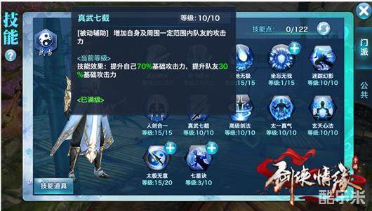 被动辅助真武七截可以增加自身及周围一定范围内队友的攻击,不仅对自身有增益效果,还可以给队友带来攻击力的加成,上限10点,点满。