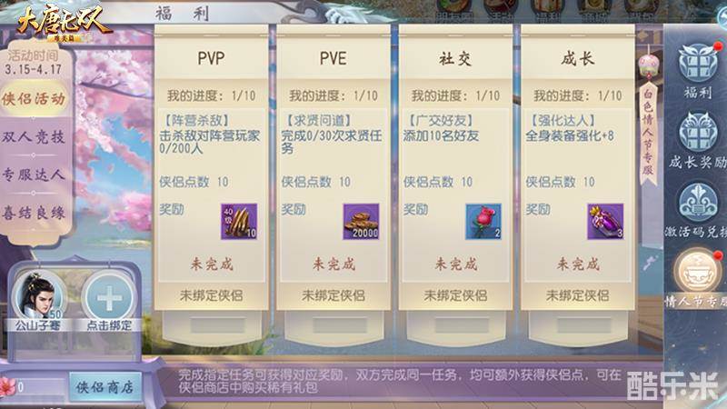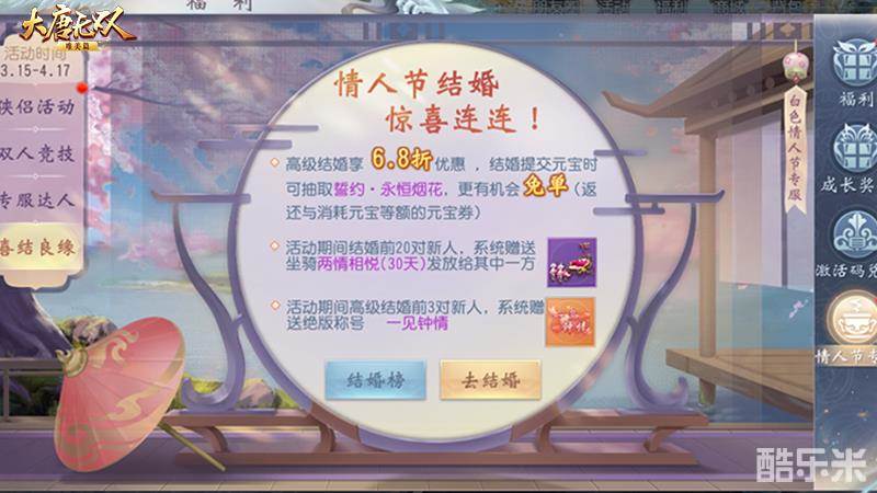 侠侣共闯浪漫天梯 《大唐无双手游》白色情人节活动精彩放送