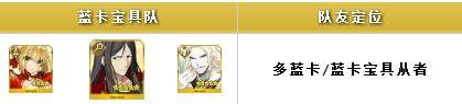 C狐与孔明都是蓝卡队的核心辅助角色,其宝具和技能既能加快队伍的续航和运转,又能提升输出位从者的攻防能力。在队伍里有孔明、C狐时,甚至可以期待靠技能NP补给和减少技能CD期待宝具连发。应对单体Boss时常用的输出手大公,或者根据克制职阶选择月神、杀式等,而应对群怪时则往往选用剑式、尼禄、芬恩、童谣等光炮从者。队伍的特点是NP连续获取能力强,有可能期待宝具的多次释放,因此最适用于需要一定续战能力和多次宝具输出的高难度副本,尤其是同时存在多名Boss或存在道中Boss的情况。考虑到队伍比起爆发更重视续航,加上队伍法师较多,不适用于狂阶、骑阶敌人较多的副本。