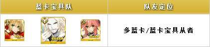 靠队伍中的大量蓝卡保证全队的NP积攒速度,孔明可以依靠技能进一步提升全队NP获取,因此对NP礼装的依赖性降低。军师指挥与石兵八阵都能有效辅助队友输出。应对单体boss时常用的输出手大公,或者根据克制职阶选择月神、杀式等,而应对群怪时则往往选用剑式、尼禄、芬恩、童谣等光炮从者。配合C狐宝具的减CD效果,可以期待孔明技能的多次释放,孔明与C狐配合是整体NP获取速率最高的队伍没有之一。