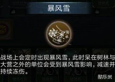 那个暴风雪可是好玩的,喜欢在敌我双方打的激烈的时候来,而且只有30秒的时间思考是与对面拼了还是进小树林还是去军营。是容易翻盘与翻车的天气,各位要小心,特别是用枪盾兵很嗨皮的人,你要考虑考虑他的速度可不可以进小树林,特别不要乱放技能不然走不动就非死即残,这里我就没有什么好建议,你们还是等着大佬给你们普及吧,我就不多说了。