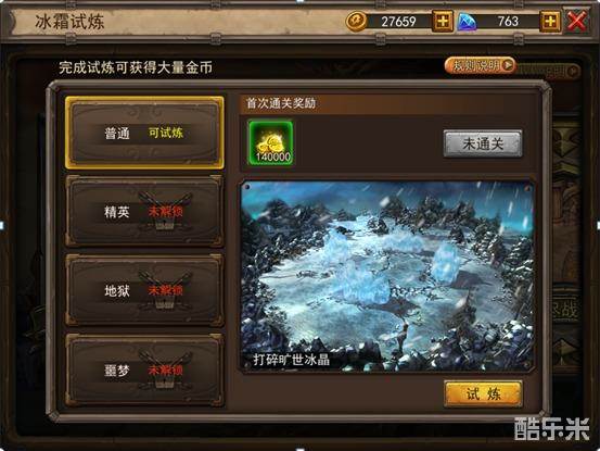 5、如果未能打碎冰晶,则根据造成的伤害结算金钱,但闯关失败,明天才能再次进入。