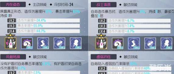 从技能组来看,私服沐恩与私服无忧一样十分依赖于主动技能的自Buff效果,其主动技能“内在姿态”将使私服沐恩在短时间内获得巨额的伤害与暴击率提升,同时被动“战士体制”又与暴击词条相关联,可以在私服沐恩主动技能持续期间为其提供相对稳定的输出增益,“风格转换”则是为其赋予了更加稳的输出提升,整个技能组就倾向于暴力输出,同时依赖于主动技能启动整个爆发流程。