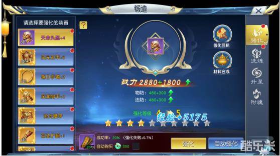 可以通过强化提升装备的属性,强化等级越高装备属性越强,提升的战力越高。