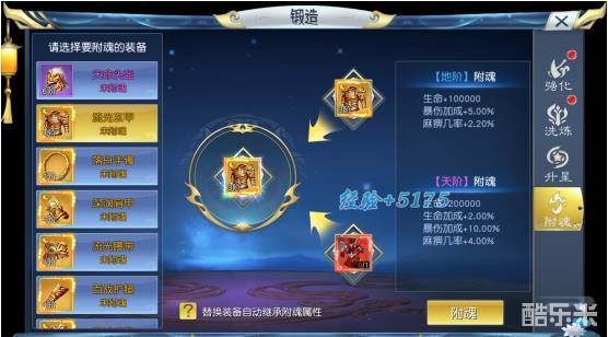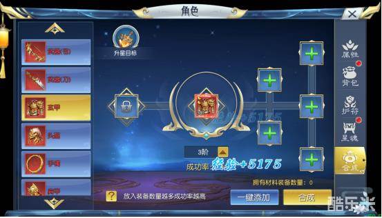 使用材料可以将装备升阶为高阶装备,解锁更多属性提升更强战力