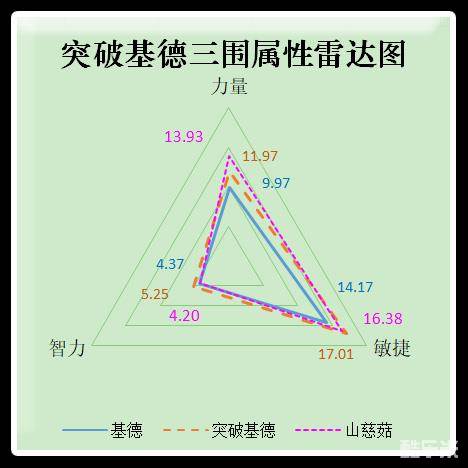 具体来看基德突破后的三围成长属性雷达图: