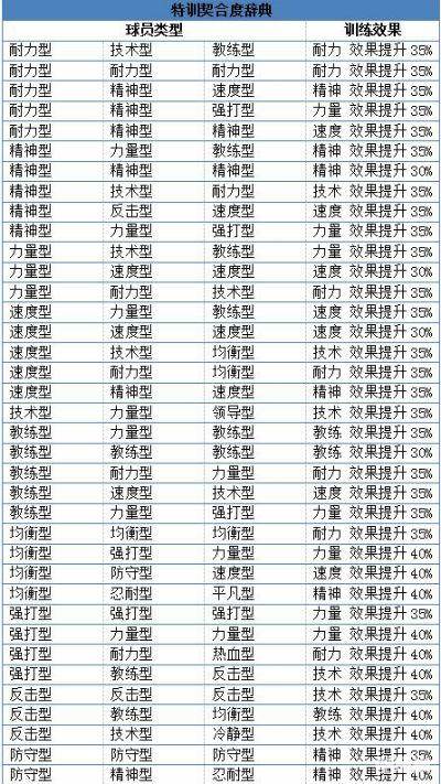 网球俱乐部物语特训契合度大全