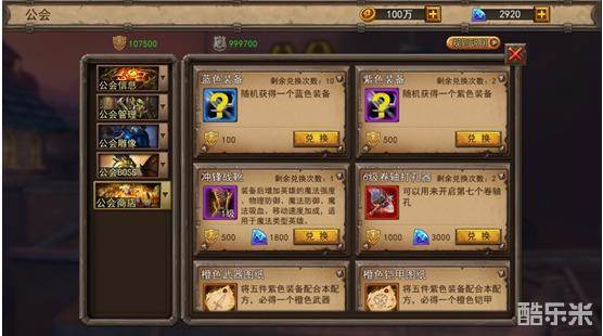 在公会商店中可以用公会贡献和钻石来兑换极其珍贵的道具,如橙色装备图纸、6级卷轴打孔器等。