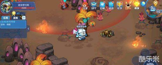 5.为喷水装置星能,零件为图一蓝色圈处,零件采集完了将底座扔在图二的图案处(图一紫色圈),然后点击你的底座会自动安装装置(切记零件不是扔的),安装完成出现星能,同时出现克莱芬星能。