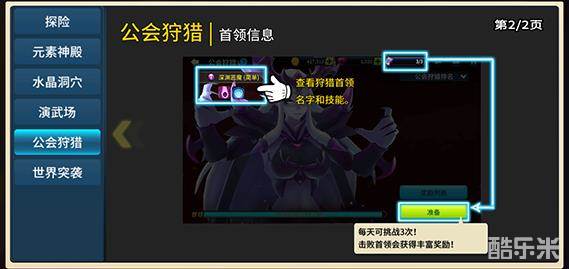 1、公会会长可以选择难度,然后就会进入激动人心的公会首领战!每个会员都要齐心协力参与!
