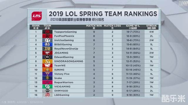 最后聊聊BLG和JDG吧,位居第五的BLG战队目前的排名其实是有水分的,目前他们取得了7胜2负的战绩很大程度得益于赛程的安排。