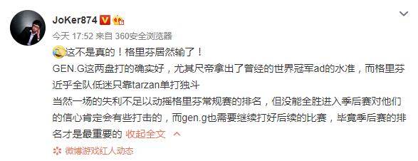 英雄联盟GEN爆冷击败GRF引热议:这是韩国LGD