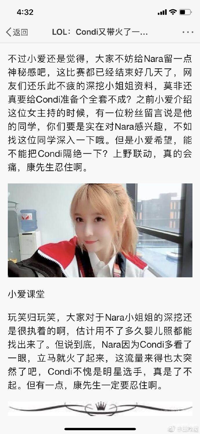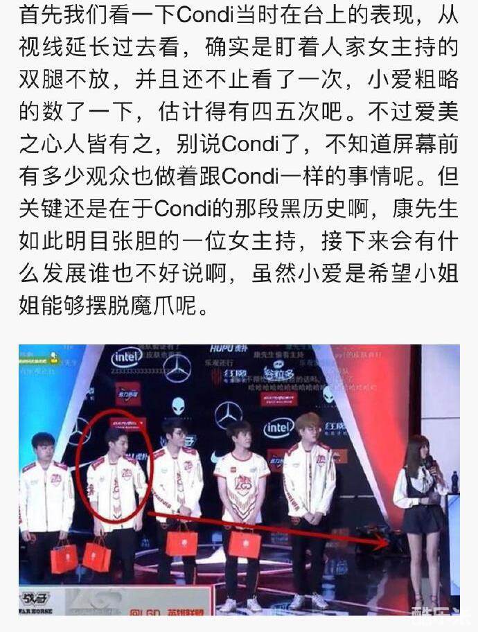 原来Condi回应的是网上一些自媒体写他在赛后握手会环节“偷窥女主持大腿”的事情。并且还写的非常过火。