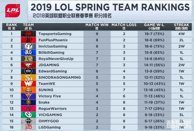 各位小伙伴,现在你们心里应该对LPL春季赛现在的格局有了一个基本的概念了吧?快看看你喜欢的战队是否能够进入季后赛呢?