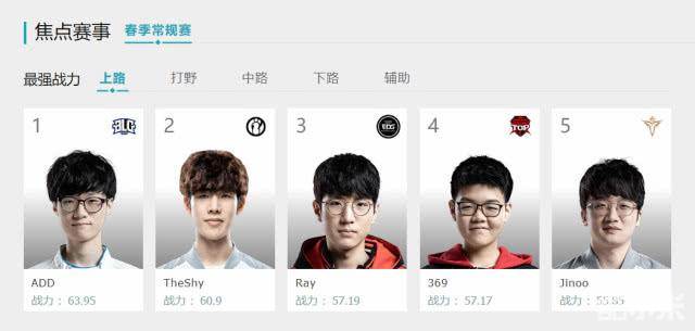 LPL春季赛第七周的比赛已经落下帷幕,LPL赛事官方也是更新了LPL各位置选手的战力榜,一起来看看吧。首先是上单位置,BLG上单选手ADD凭借63.98的战力值力压TheShy拿下最强上单宝座,第三名则由EDG上单Ray选手拿下。ADD排名第一可能会有争议,因为BLG此前的对手都相对较弱。值得一提的是,在上单战力榜前五,仅有TOP上单369一人是国产上单,其余四人都是韩援选手。