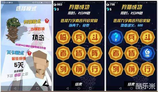 当狩猎成功后会跳出一个翻牌九宫格,翻前面两个免费,可以随机获得魂火或碎片,如果要继续翻则需要使用魂火。