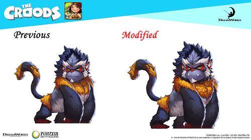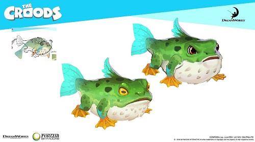 其实早在原作电影《疯狂原始人》制作之初,梦工场就设计了许多不同种类、栖息地的原始动物。这次中方研发团队在和IP方梦工场动画影片公司的交流合作中,不仅把为电影设计,但遗憾没有呈现给观众们的宠物们加入游戏。也激荡出新的灵感火花,创造了更多新的生物组合,例如号称黑夜杀手的“黑蝠豹”、有着最强辅助之称的“蛙眼豚”等。
