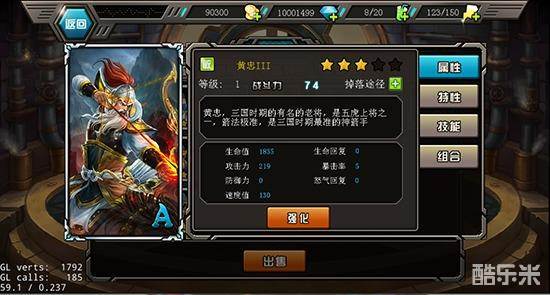 玩家最关心的英雄信息界面除了英雄信息介绍之外还包括:强化、属性、特性、技能、组合等。