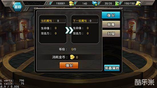 装备强化,分为强化,附魔,升级等,并且在此界面可以查看装备属性,附魔可以大大的提高装备能力