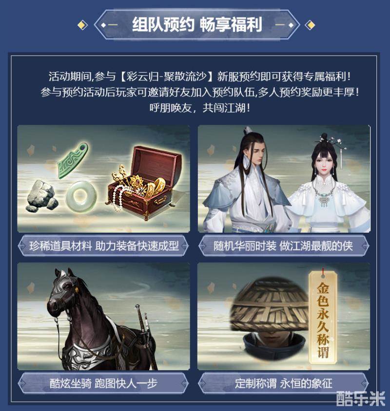 联动开启,全新主题服务器“聚散流沙”也随之推出,为各路玩家提供相聚同游的机会。通过官网预约新服的玩家可以领取丰厚的专属奖励,少侠切莫错过!