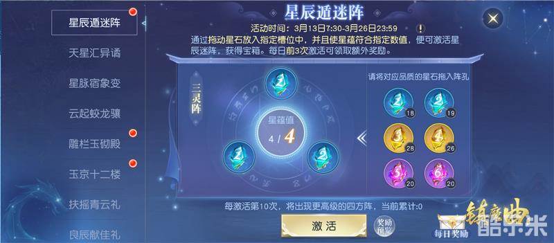 有星辰迷阵,供天命者们研究、破解,成功解开迷阵者将收获群星真藏、天材地宝无数。也有受星辰之力、明媚春光影响,魔化变异的天罡、地煞众星宿,等着天命者们替它们“驱魔”。还有春日美好日常更新,天命者们可组队踏青、完成挑战,收获更多奇珍异宝。