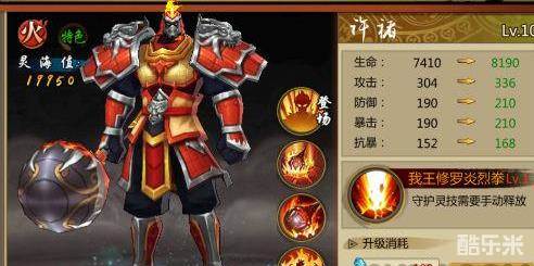 融合技能:融合型寄灵人和许褚合体后,能力得到巨大提升,攻击力提升20%,火属性强化提升15点。