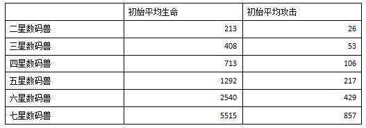 小编特意统计了数百种数码兽的生命和攻击数据,得出了个平均值,详见下表。
