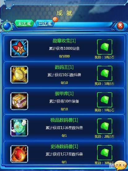 比如获取10只数码兽,获取10件装备,添加5个好友等等。