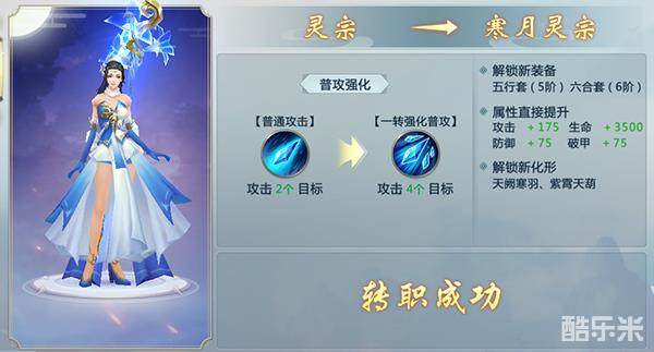 灵宗一转后将成为寒月灵宗,普攻目标增多,由2个增至4个;解锁5、6阶装备;开放部分翅膀、法宝化形;还能为上仙们增加大量战力。