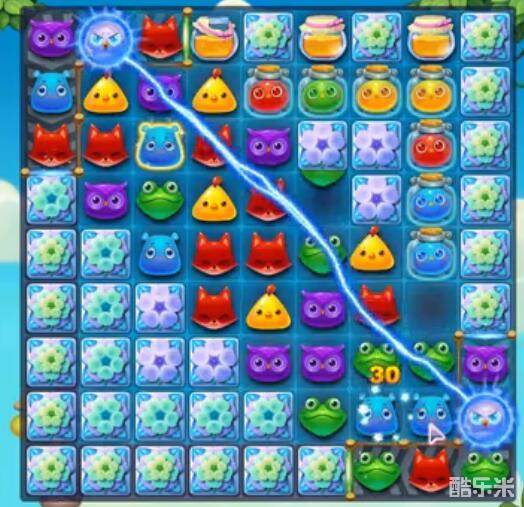 在最后制作出魔力鸟的组合,消除最后的剩余雪块与蜜罐,就可以成功的过关了,一定要充分的利用闪电鸟的对角线连接。