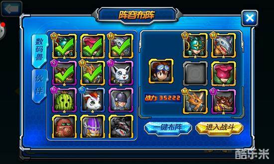 看,是不是有激活了数码兽的缘分技能?小伙伴们切记,阵法与数码兽的缘分不分家,再屌的数码兽没有激活缘分技能就相当于没有发挥它的价值等于渣渣,所以没有强悍的数码兽或者阵法,只有最强大的数码兽和阵法的完美组合!