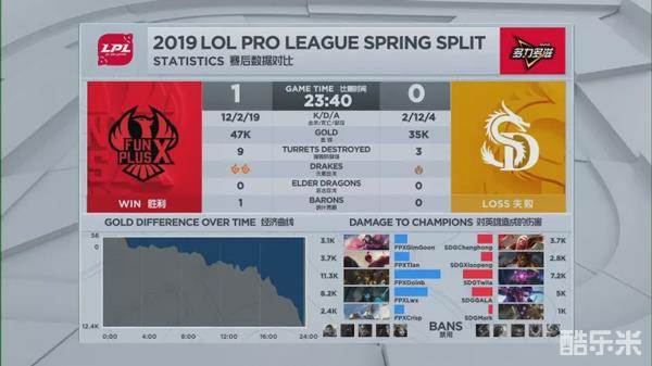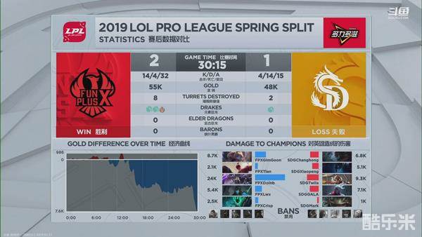 比赛的前期,FPX交锋连续取胜,顺利帮助己方最需要发育的卡萨丁拿到人头经济,前期领先巨大。