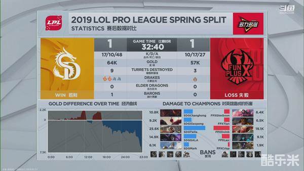 在30分钟,SDG趁FPX分带直接拿下大龙,随后携大龙推进高地反手开团团灭FPX,SDG第二局强势扳回一城!