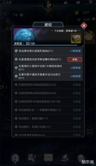 酒馆任务是琥珀探索度23,22任务,这些任务达成后可以刷出酒馆任务,平时我们在星球探索任务中看到有??问号提示的任务一定要赶紧做,这任务可以帮你完成探索度条数,不过任务也是随机的,刷出酒馆任务是随机的。
