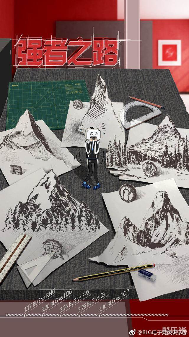 可以看到在此次BLG发布的海报中,IG、EDG、RNG等五个队伍都被画成了五座大山,而BLG战队在几座大山的中间瑟瑟发抖,海报的主题是“强者之路”寓意只有跨过这些大山才会成为真正的强者,可以说相当的有创意。
