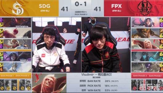 第一局双方阵容五五开,FPX擅长带节奏所以前期一直保持着经济领先,在下路一波越塔后FPX更是滚起雪球,虽说SDG中期有打回一些局势但是却是杯水车薪,20分钟FPX携大龙攻下SDG,先下一城。