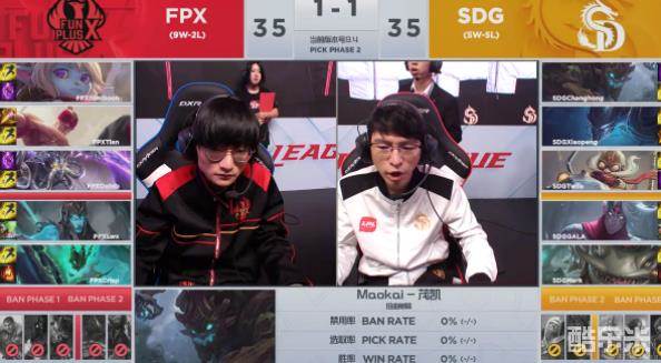 第三局生死局,SDGBAN掉五个中单位置,FPX则按死SDG上野,前期FPX不断在交锋中取得胜利,卡萨丁是一路顺风顺水到了后期成为了无解的存在,FPX轻松赢下BO3比赛。