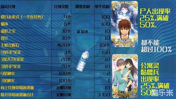 本次活动奖励分为两种,第一种还是惯例的活动限时兑换商店,商店中的商品需要使用活动中刷的金银铜三种材料兑换,兑换列表如下