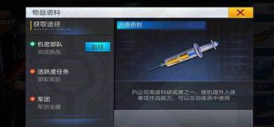 独立防线强身健体小道具兴奋药剂使用,在独立防线中有着各式各样的道具,每个道具都有着不同的作用,那么今天小编就为大家来介绍一下兴奋药剂。兴奋药剂是pi公司高级研发成果之一,用来突破人体极限提升作战能力,可以在训练场中使用。